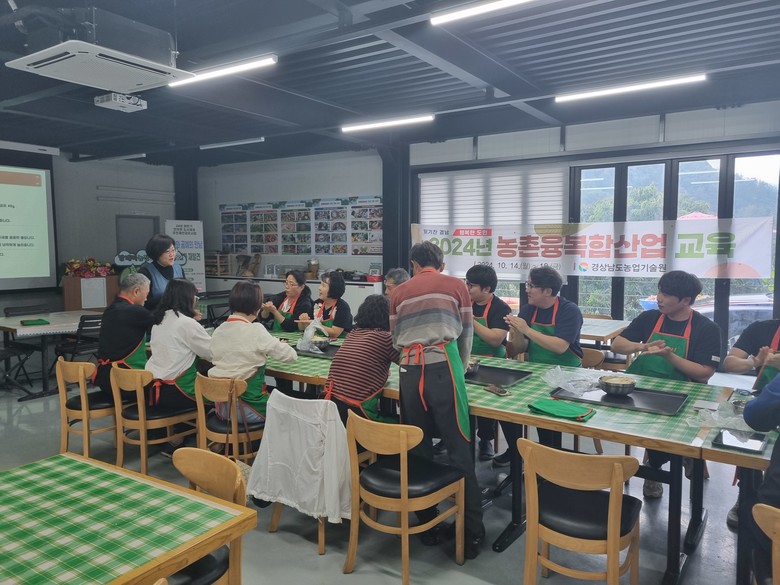 - 농산물 생산 및 가공, 체험분야 접목으로 농촌융복합산업 이해 증진 [세계타임즈=경남 최성룡 기자] 경상남도농업기술원(원장 정찬식)은 지난 14일부터 18일까지 5일간 도내 농업인 15명을 대상으로 지역농특산물과 연계한 농촌의 새로운 부가가치 창출을 위한 ‘농촌융복합산업 교육’을 실시했다고 밝혔다.