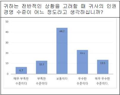 - 인권경영 점수는 우수, 실상은 미흡...근로환경 및 직장문화개선 시급