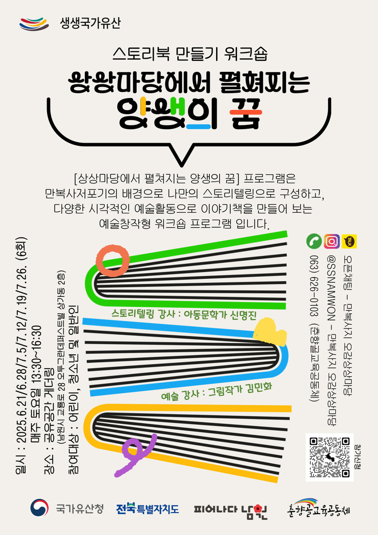 [세계타임즈=남원시 신승민 기자] 남원시가 주최하고 춘향골교육공동체가 주관하는 ‘생생국가유산 활용사업’의 일환으로, 오는 6월 21일(토) 만복사지 일원에서 스토리북 만들기 워크숍 프로그램으로 『상상마당에서 펼쳐지는 양생의 꿈』 체험 프로그램이 열린다.