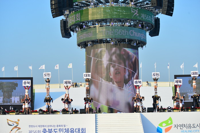 162만 충북도민의 화합의 장인 제56회 충북도민체육대회가 15일 개최지인 제천에서 ‘한방도시 제천에서 솟아나는 충북의 힘!’이라는 슬로건 아래 화려하게 개막했다.