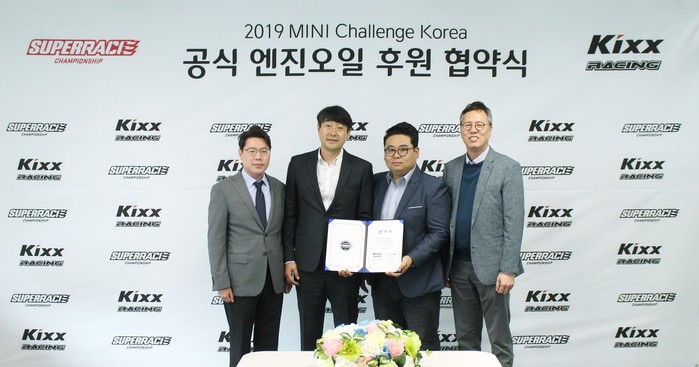 [세계타임즈 김인수기자] 2019 CJ대한통운 슈퍼레이스 챔피언십을 통해 새롭게 선보이는 MINI 챌린지 코리아가 더욱 신명나는 레이스를 펼칠 수 있게 됐다. ㈜토탈엘앤씨가 MINI 챌린지 코리아의 공식엔진오일 후원에 참여했다. 김동빈 ㈜슈퍼레이스 대표와 심재후 ㈜토탈엘앤씨 대표는 24일 서울시 중구 CJ제일제당센터에서 만나 올 시즌 상호협력하기로 약속했다. 이번 협약을 통해 올 시즌 MINI 챌린지 코리아의 공식엔진오일로 GS칼텍스에서 새롭게 출시되는 Kixx 레이싱 엔진오일이 활용된다.