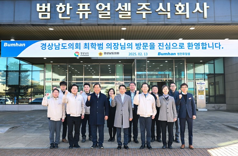 [경남 세계타임즈=최성룡 기자] 최학범 경상남도의회 의장은 13일 창원시에 위치한 범한퓨얼셀(주)(대표이사 황정태)을 방문하여 수소 모빌리티 관련 기업 애로사항을 청취하는 간담회를 가졌다.