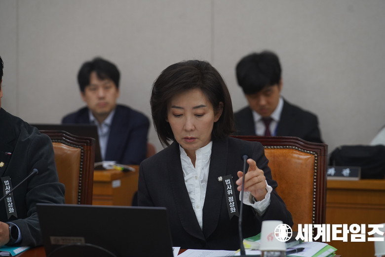 국민의힘 '나경원' 의원이 24일 서울 여의도 국회에서 열린 법제사법위원회의 법제처에 대한 국정감사에서 의사진행 발언하고 있다.