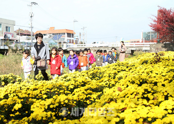 올봄 용산동 마을공동체는 충주천변 3천여㎡에 국화꽃밭을 조성했다.