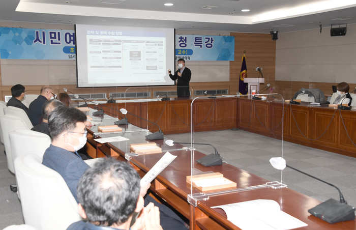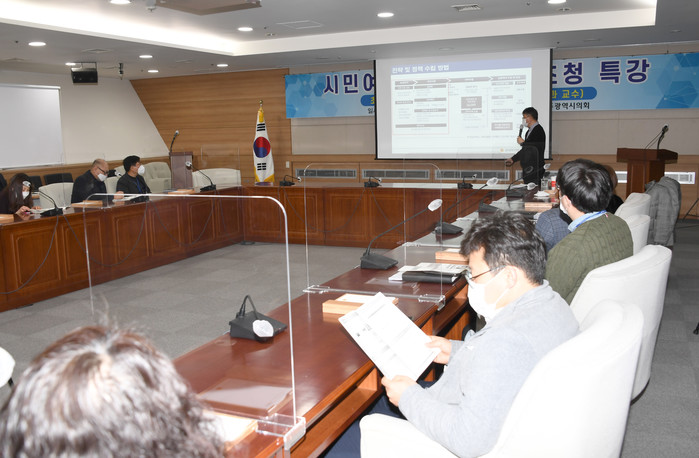 [광주=세계타임즈 손권일 기자] 광주광역시의회(의장 김용집)는 25일 여론조사 전문가를 초청하여 시민여론조사 기획, 방법 및 사후 활용방안 등에 대한 강연을 실시했다.