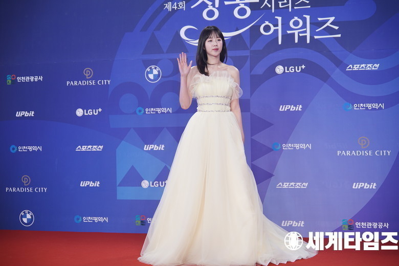 18일 오후 인천 파라다이스시티에서 ‘제4회 청룡시리즈어워즈(BSA)’ 레드카펫 행사가 열린 가운데 배우'지예은'이 레드카펫 행사에 참석해 포토타임을 갖고 있다.