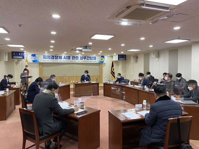 [부산=세계타임즈 장경환 기자] 부산시의회 행정문화위원회(김태훈 위원장)은 12일 오전 10시, 부산시의회 의원회관에서 부산형 자치경찰제 시행을 위한 실무 간담회를 개최했다.