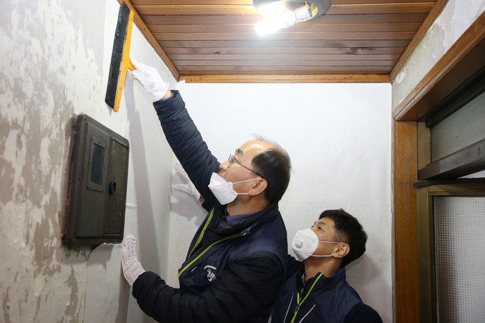 특히 엄광섭 캠코 상임감사와 천정우 캠코 가계지원본부장이 직원들과 함께 도배 및 장판 교체 등 노후주택 개보수 봉사활동에 참여해 의미를 더했다.