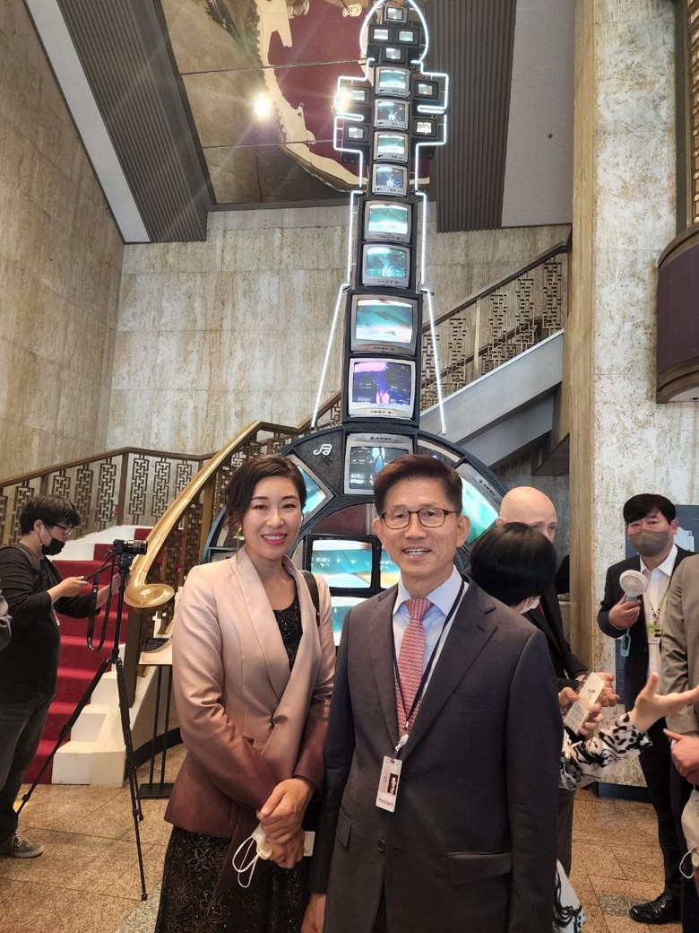 ▲'2022 서울락스퍼국제영화제'에서 장주영 평론가(왼쪽)와 김문수 전 경기지사(오른쪽) |