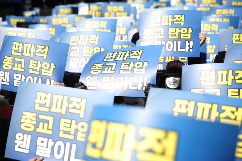 참석자들은 결의문 낭독 후 “정치와 종교를 분리하라”, “편파적 행정을 중단하라”는 구호를 외치며 항의했다.