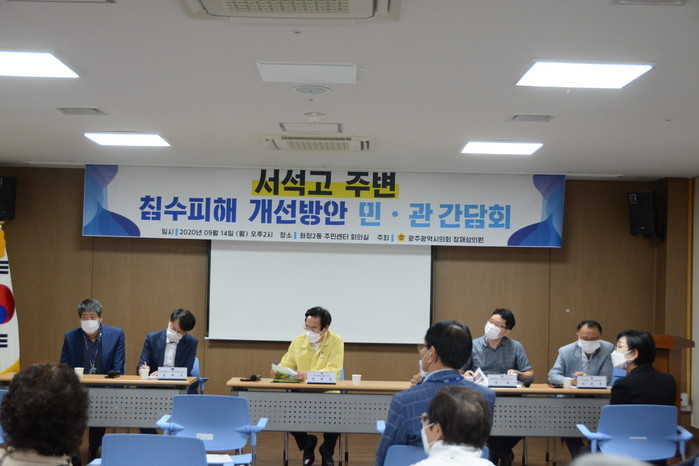 [광주=세계타임즈 손권일 기자] 광주광역시의회 장재성 의원(더불어민주당, 서구1)은 지난 8월 서석고 주변에서 국지성호우로 인해 침수피해가 발생하여 주민들과 문제에 대한 개선방안을 모색하기 위해 14일 화정2동 주민센터에서 민·관간담회를 개최했다.