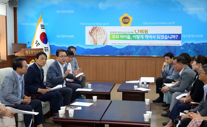 [대구=세계타임즈 손권일 기자] 대구광역시의회 강민구 의원은 10일 오후 1시 대구시의회 2층 간담회장에서 대구시의회 김성태 시의원과 대구시 출산보육과장, 대구기초의원, 어린이집 학부모 등 관계자 16명 등이 참석한 가운데 어린이집 급간식비 현실화를 위한 간담회를 갖고 의견을 수렴하였다.