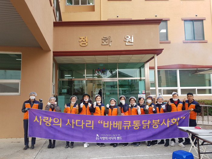 [대전=세계타임즈 이장성 기자] 대전시 SNS 봉사단체 사랑의 사다리 밴드(리더 이정제)는 21일 오후15시, 대덕구 대화동에 위치한 정화원(원장 윤여진)에서 바비큐 통닭 봉사로 우리 사회의 따뜻한 사랑을 전달하였다.
