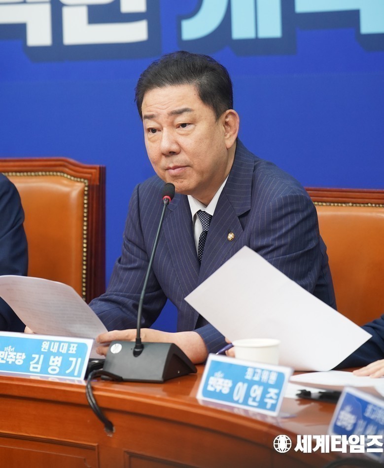 더불어민주당 '김병기' 원내대표가 8일 서울 여의도 국회에서 열린 최고위원회의에서 발언하고 있다.