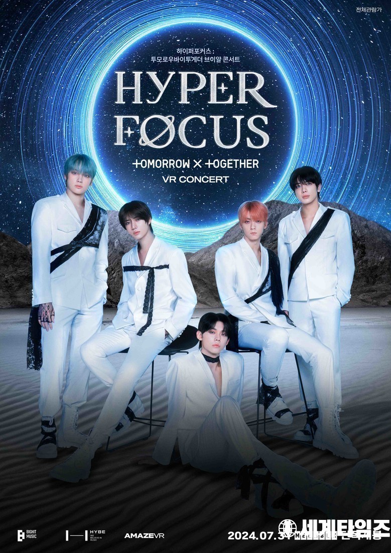Kpop 대표 보이그룹 ‘투모로우바이투게더(TOMORROW X TOGETHER)’가 오늘(17일) 오전 10시부터 메가박스에서 첫 번째 VR 콘서트 ‘하이퍼포커스 : 투모로우바이투게더 브이알 콘서트(HYPERFOCUS : TOMORROW X TOGETHER VR CONCERT, 이하 ‘하이퍼포커스')’의 1차 티켓 판매를 시작한다.