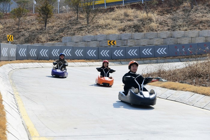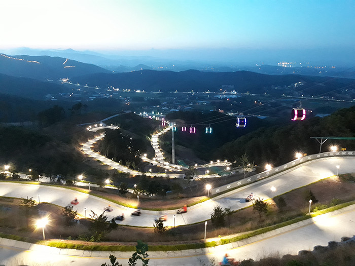 <(사진 위)루지 코스 야경, (아래)루지>