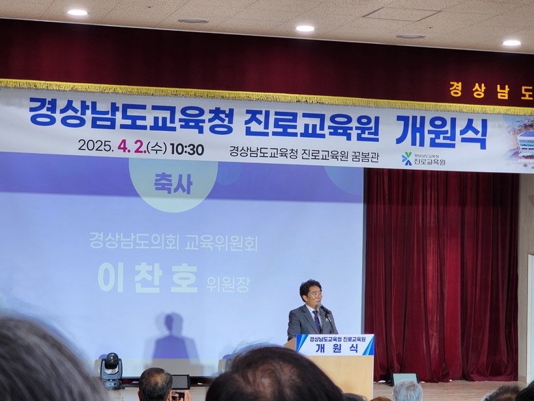 [경남 세계타임즈=최성룡 기자] 경상남도의회 교육위원회 이찬호(국민의힘, 창원5) 위원장은 2일, 밀양시 교동에 소재한 ‘경상남도교육청 진로교육원’ 개관식에 참석했다.