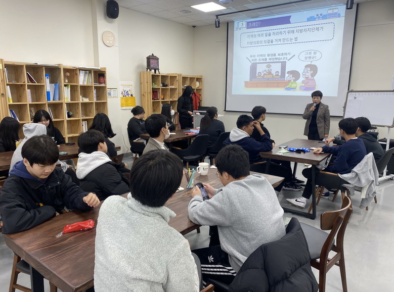 익산청소년자치공간 「다꿈」이 익산 지역 청소년들의 사회참여 역량 강화를 위해 지난 11. 11.(토)에 개최한 「청소년 참여역량 강화 아카데미」에 강사로 나선 정영미 의원은 익산시 조례를 중심으로 조례의 개념과 제정 절차, 지역 사회에 미치는 영향 등에 대해 쉽고 재미있는 설명으로 참여 학생들에게 많은 호응을 받았다.