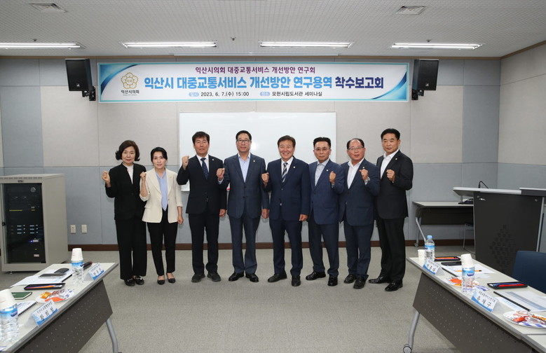 익산시의회 의원연구단체 「대중교통서비스 개선방안 연구회(대표의원 소길영)」는 6. 7.(수) 연구단체 회원들과 전문가, 관계 공무원 등 20여명이 참석한 가운데 「익산시 대중교통서비스 개선방안 수립 연구용역」 착수보고회를 개최했다.