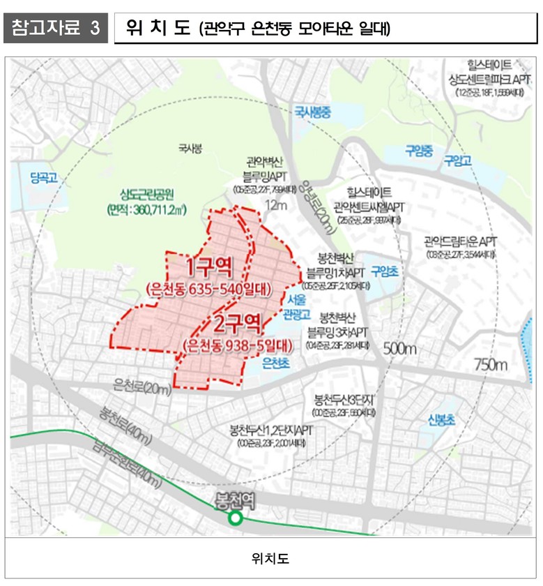 ② 관악구 은천동 635-540, 938-5일대 모아타운, 4,870세대 대단지 규모 정비 추진