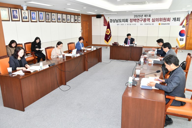 [경남 세계타임즈=최성룡 기자] 경상남도의회는 2025년 2월 28일, 제1회 경상남도의회 정책연구용역 심의위원회를 개최하였다. 이번 심의위원회는 서민호 위원장의 주도로 진행되었으며, 의회 운영위원회 소속 의원 3명과 각 분야에서 풍부한 경험과 전문성을 지닌 외부 전문가 4명이 함께 참여하여, 8개 연구단체의 연구용역에 대해 심도 있는 검토를 진행하였다.