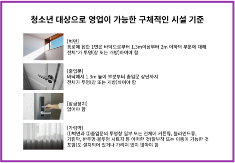 - 청소년 출입·고용 금지 업소에서 불투명 시트지 등을 설치하고 청소년 출입 허용