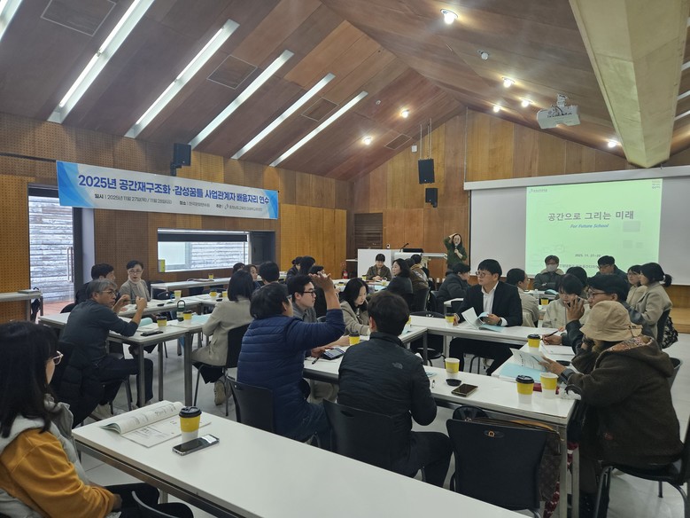 이번 연수에는 공간재구조화사업과 감성꿈틀사업을 담당하는 학교 업무 담당 교원, 교육지원청 업무 담당자, 건축사 등 학교공간혁신 사업 관계자들이 참여해, 교육과정과 수업을 담아내는 미래형 학교공간의 방향에 대해 함께 고민하는 시간을 가졌다.