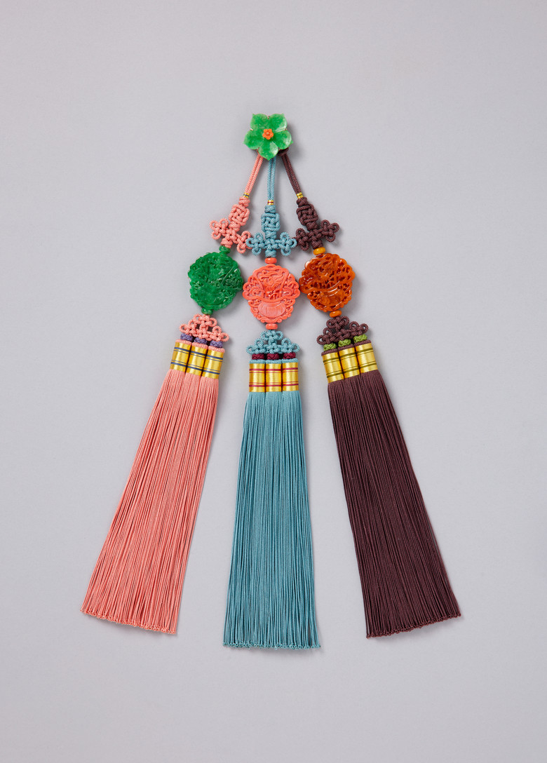 ‘매듭장’은 색색의 비단실끈을 다양한 방식으로 엮어, 화려한 색감과 균형 잡힌 아름다움을 보여주는 대표 공예 기술이다. 이번 전시에는 아름다운 각양각색의 노리개가 선보이고, 공개행사에는 노미자 보유자가 직접 방망이술(어보(御寶)를 장식하던 둥근 모양의 술머리) 만드는 기술을 보여준다.