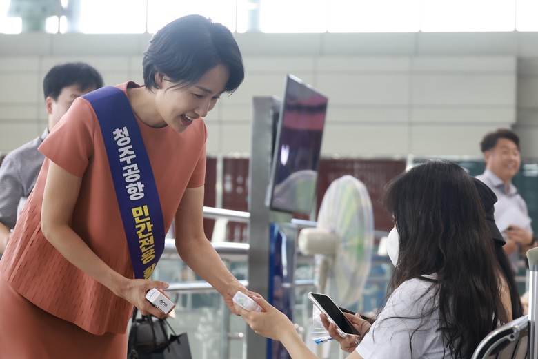 행사에 참여한 김수민 충북도 정무부지사가 “국가균형발전의 새로운 성장축인 청주국제공항 민간전용 활주로 건설과 ‘동탄~청주공항~김천 철도 건설 사업’을 조속히 추진할 것”을 촉구하고 있다.