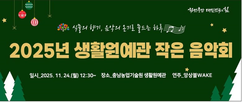이번 음악회는 생활원예관을 정원·치유·문화가 결합된 열린 문화공간으로 활성화하고, 방문객에게 식물과 함께하는 정서적 휴식의 장을 제공하기 위해 준비됐다.