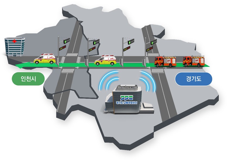 이번 사업은 소방차나 구급차 등 긴급차량이 이동 경로에 따라 교통신호를 자동으로 제어해 정지 없이 교차로를 통과할 수 있도록 돕는 첨단 교통 시스템을 경기도와 인천광역시가 연동하는 것이 핵심이다.