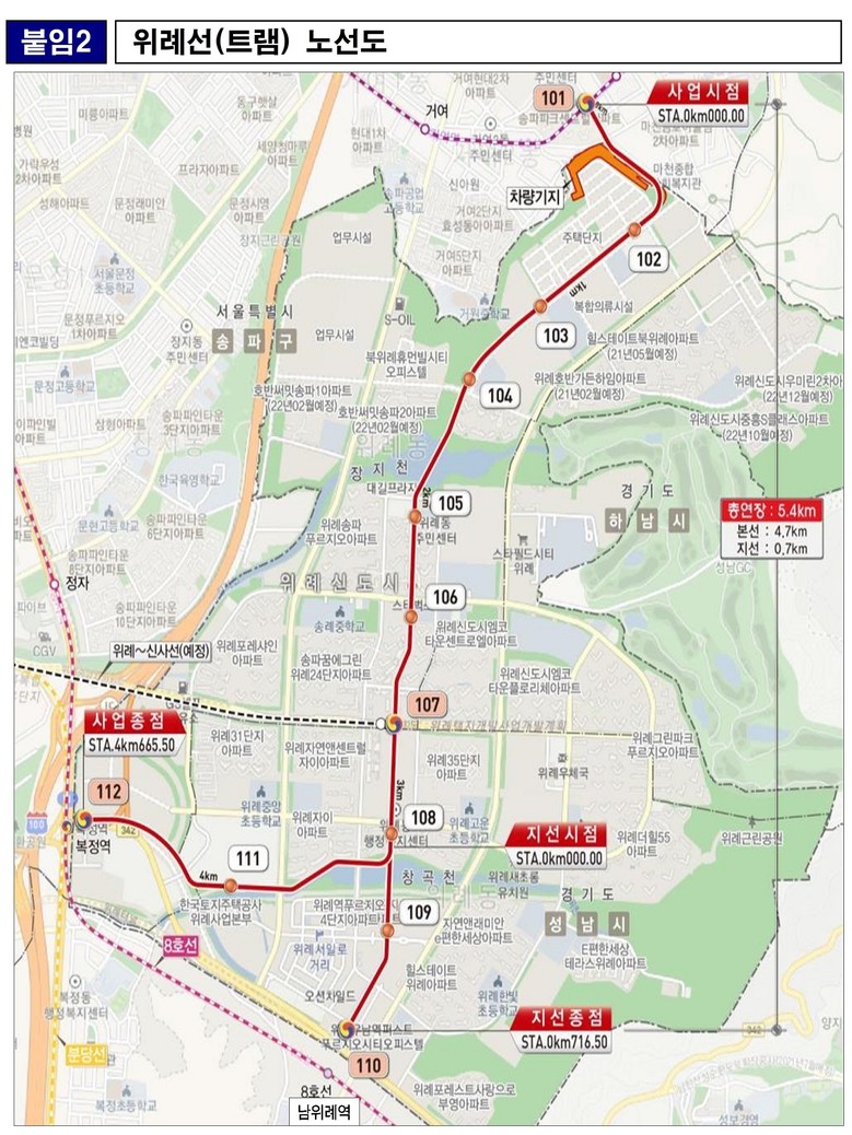 시는 이를 위해 위례선 트램 초도편성 차량을 27일(화) 새벽, 차량기지로 반입할 계획이다. 차량 반입은 26일 23시부터 27일 5시까지 교통량이 적은 야간시간대에 진행되며, 송파경찰서와 협력해 교통 통제와 안전요원 배치를 완료하는 등 시민 불편을 최소화할 예정이다.