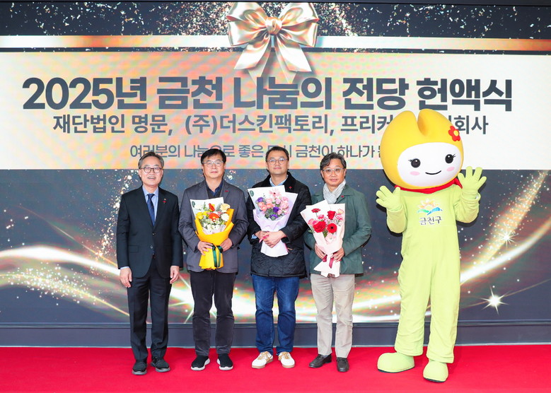 이날 금천구청 1층 ‘나눔의 전당’에는 지역사회 기부 문화 확산에 기여한 ▲ 재단법인 명문 ▲ ㈜더스킨팩토리 ▲ 프리커스 주식회사 총 3곳이 신규로 등재됐다.