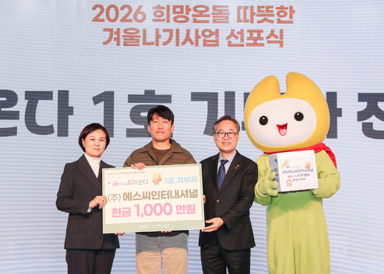더불어, 사각지대 해소를 위한 신규 사업 ‘금(천구 김)치가 온다’의 제1호 기부자인 ㈜에스씨인턴내셔널의 기부금 전달식도 함께 진행됐다. 이 사업은 겨울철 저소득 가구에게 가장 기본적이고 필수적인 음식인 김치를 지원해 건강한 먹거리를 보장하고, 기존 연말 김치 배분의 한계를 보완해 취약계층 1가구당 1김치 지원을 목표로 한다.