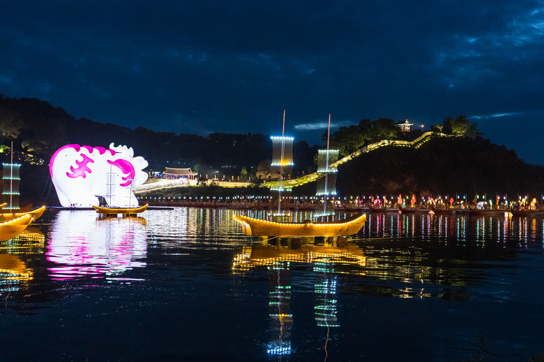 밤에는 아름다운 불빛이 공산성을 수놓고 그 모습이 금강에 거울처럼 비쳐 관광객들에게 아름다운 광경을 선사한다.