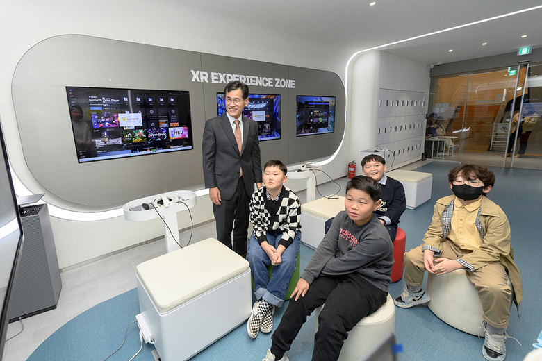 | ▲ 목동미래교육센터 XR(확장현실) 체험존에서 학생들과 이기재 양천구청장 |