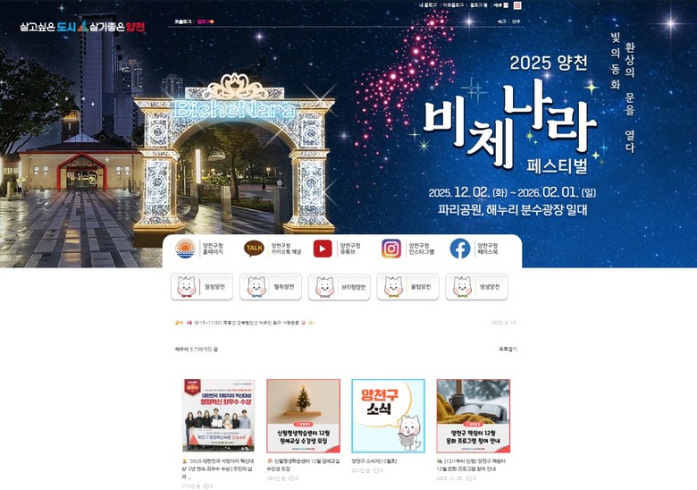 이기재 양천구청장은 “양천 블로그는 행정의 언어가 아닌, 주민의 언어로 소통하며 구정과 생활을 잇는 창구 역할을 해왔다”며 “앞으로도 블로그는 물론, 인스타그램·페이스북 등 다양한 SNS 채널을 통해 보다 쉽고 친근하게 정책을 전달하며 주민과의 소통을 이어가겠다”고 말했다.