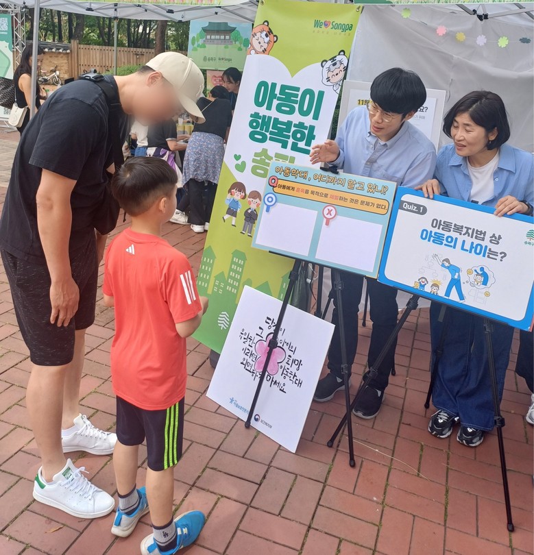 구는 아동학대 예방주간(11월 19일~25일) 핵심 행사로 11월 24일 유동 인구가 많은 롯데월드 어드벤처 입구 일대에서 아동학대 예방 합동 캠페인을 진행한다. 서울동남권아동보호전문기관, 송파경찰서 등 아동보호 관련 기관에서 40여 명이 함께한다.