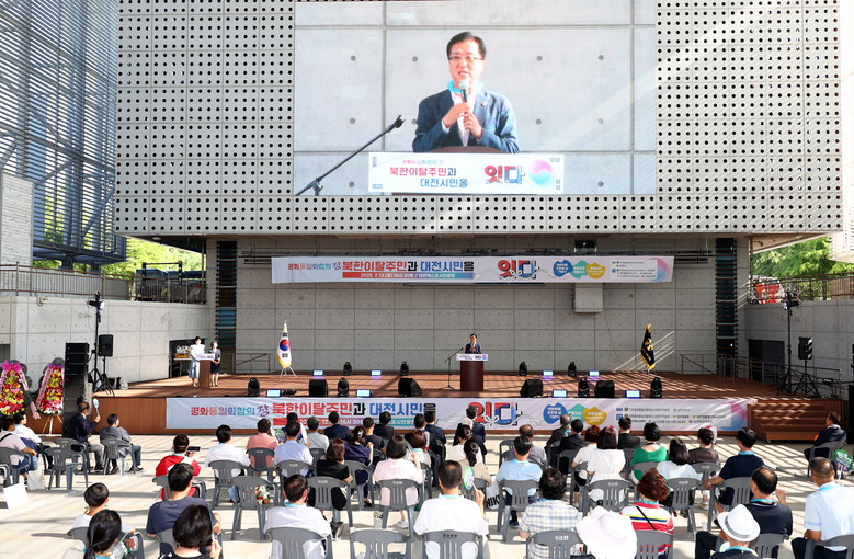 [대전 세계타임즈=이채봉 기자] 대전시의회 조원휘 의장은 12일 엑스포시민광장에서 개최된 2025년 평화통일 화합의 장에 참석해 이웃사촌으로서 북한이탈주민을 환영하며 안정적 정착과 자립을 위한 관심과 지원을 약속했다.