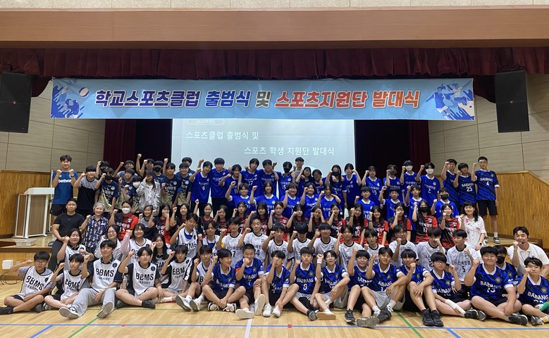 [아산시 세계타임즈=백택기 기자] 아산배방중학교(교장 이병례)는 방과 후 승리관에서 ‘학교 스포츠클럽 출범식 및 스포츠 지원단 발대식’을 실시하였다. 순서는 학생대표 박O후의 개회사로 시작하였으며, 교장 선생님의 축사와 주장 완장 및 단복 전달식 등이 이어졌다.