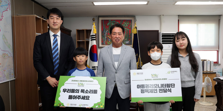 [계양구 세계타임즈=심하린 기자] 인천광역시 계양구의회(의장 조양희)는 22일 구의회 의장실에서 굿네이버스 인천북부지부 아동권리모니터링단과 함께 정책전달식을 진행했다.