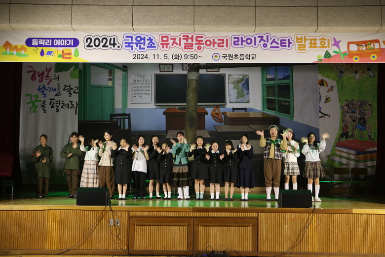 이영희 국원초등학교장은 “학생들이 성장하는 마을을 예술의 벌판으로 삼아 생활 속에서 예술을 향유하여 예술적 성취감과 자신감을 기르고, 창의성과 감성을 겸비한 능동적 인재로 성장하는 모습이 자랑스럽다. 앞으로도 희망의 빛을 더해 갈 국원초등학교의 예술 교육을 위해 애쓰겠다.”고 말했다.