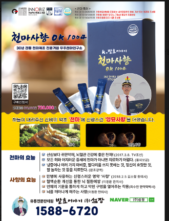 천마가 뇌의 영양제 또는 뇌의 밥이라고 하는 것은 잘 알려져 있고 또한 이러한 뇌신경질환의 예방 및 걔선 또는 치료용 조성물에 대한 특허기술로 제조했기 때문이다.