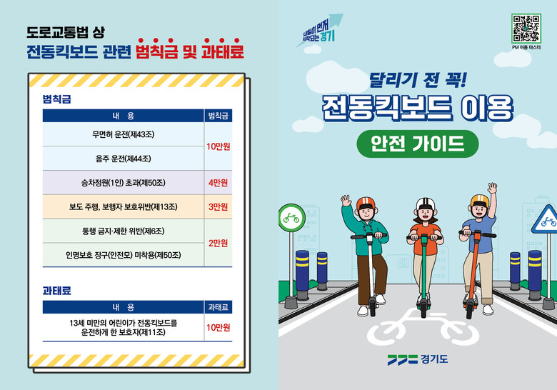 도는 전동킥보드 주요 사고 다발지역 및 유동인구 밀집 지역을 중심으로 유관기관 및 시민단체와 연계해 전동킥보드 필수 안전수칙이 담긴 홍보물을 배부하고 경찰과 협력해 현장 계도 활동도 병행한다.
