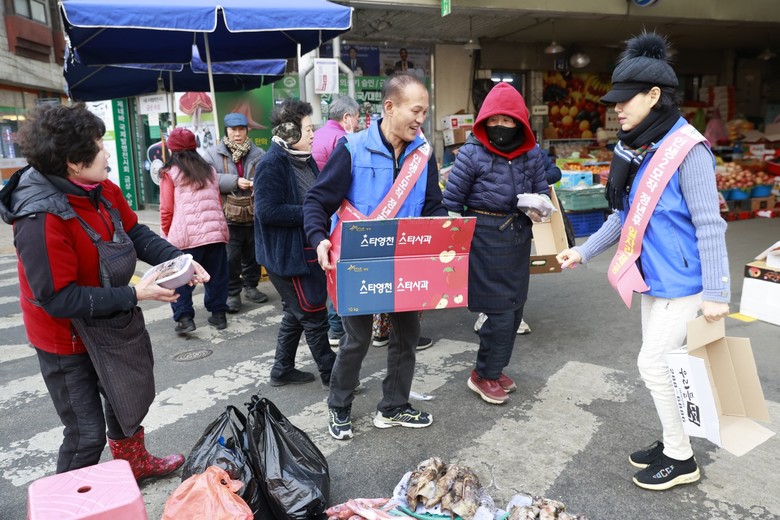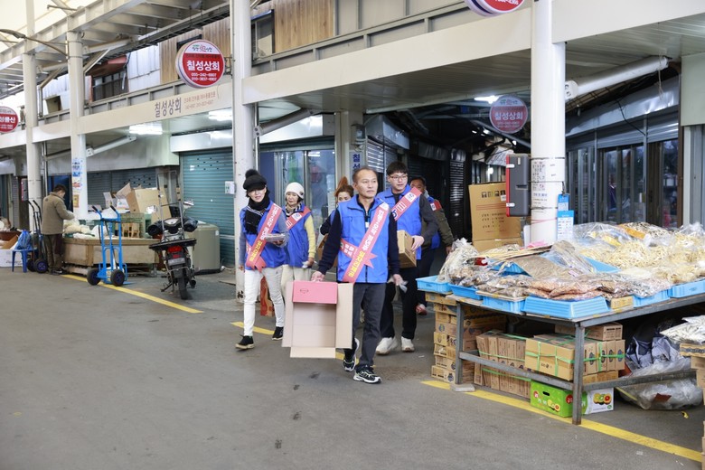 [세계타임즈]최성룡기자 = '이 비티에스 협동조합'경남연수원 (원장 이수진) 회원들은 어시장 길가의 노점상 야채와 건어물을 판매하는 상인들에게 사랑 나눔 따듯한 팥죽과 시루떡으로 온정을 베풀었다.
