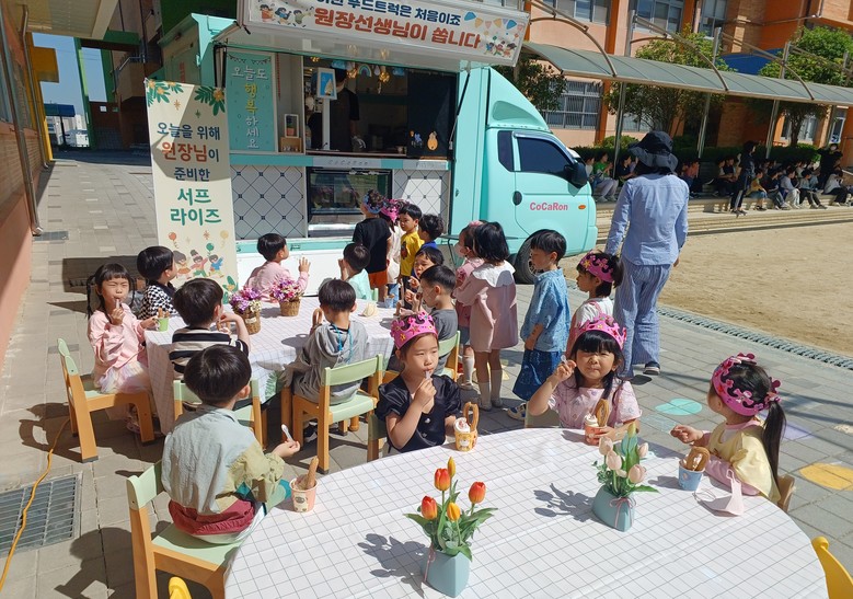 참가한 어린이들은 ▲어린이날 포토존 ’오늘은 내가 주인공‘ ▲버스킹 공연 ’내 꿈을 펼쳐봐‘ ▲간식코너 ’푸드트럭이 왔다‘ ▲비눗방울 놀이 ▲페이스페인팅(타투 스티커) ▲바깥놀이 및 모래놀이터 등의 놀이 활동을 유치원 곳곳에서 자유롭게 즐기며 행복한 시간을 보냈다.