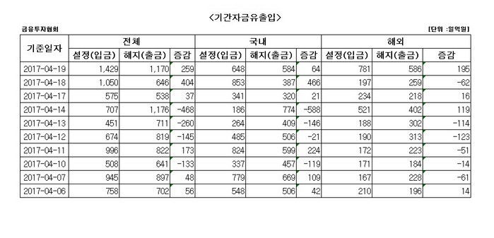 해외 주식형펀드는 195억원 늘면서 하루 만에 순유입됐다.