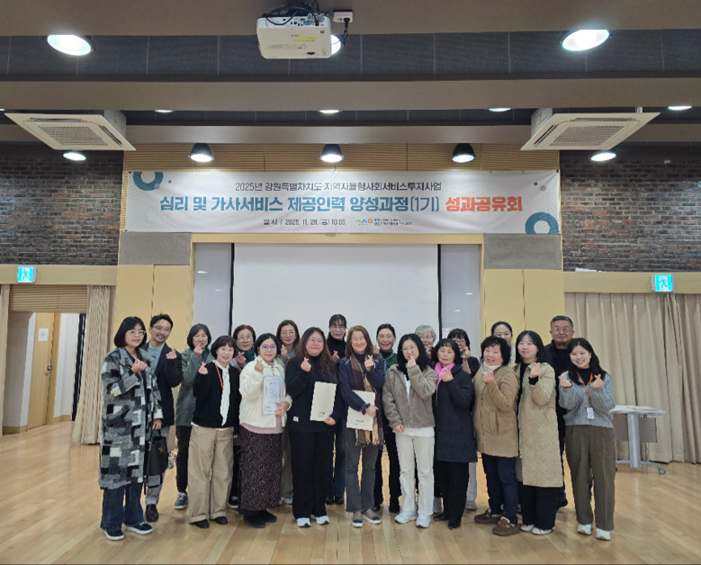 이번 양성과정은 2025년 강원특별자치도 지역자율형 사회서비스 투자사업의 제공인력 양성을 위해 지난 9월부터 11월까지 총 40시간에 걸쳐 심리서비스와 가사서비스에 대한 이론 및 사례실습 교육이 진행됐다.