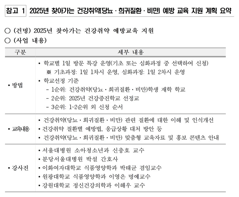 주요 내용은 ▲당뇨·비만·희귀 질환의 이해 ▲응급상황 대처 및 자기관리 방법 ▲건강 취약 친구 돕기와 공감 실천 ▲건강한 생활 습관 형성 등으로 구성됐다.