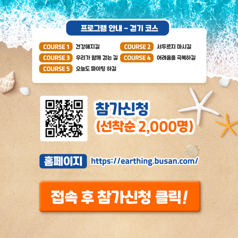 참가 신청은 세븐비치 어싱챌린지 누리집(earthing.busan.com)을 통해 선착순 접수로 진행 중이며, 참가비는 무료다.